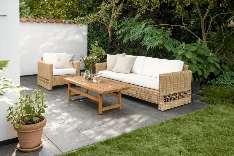 Der Carrie-Loungesessel ist Teil der „Georgia Garden“-Kollektion von Sika-Design, die von der Ästhetik des britischen Kolonialstils und klassischen dänischen Korbmöbeln inspiriert wurde. Das Alu-Rattan-Aluminium und das synthetische ArtFibre-Geflecht verleihen den Möbeln ein rattanähnliches Aussehen. Zudem sind die Möbel pflegeleicht und für alle Wetterbedingungen geeignet. Dank der langlebigen Materialien und des zeitlosen Designs eignet sich die „Georgia Garden“-Kollektion sowohl für private Gärten als auch für öffentliche Außenbereiche.