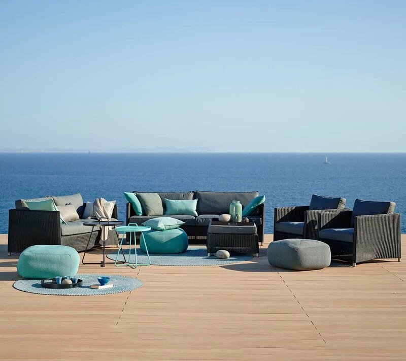 Das Diamond-Sofa von Cane-line passt mit seinem schlanken Design perfekt in jede Sommeroase auf dem Balkon oder der Terrasse. Das von Foersom & Hiort-Lorenzen entworfene Sofa ist mit Cane-line Tex bezogen, einem hochwertigen Polyestergewebe, das sowohl Regen als auch Sonnenschein standhält. Zudem ist es mit bequemen Sitzkissen mit schnell trocknender Schaumstoffpolsterung ausgestattet, die sich ideal für den Einsatz im Freien eignen.