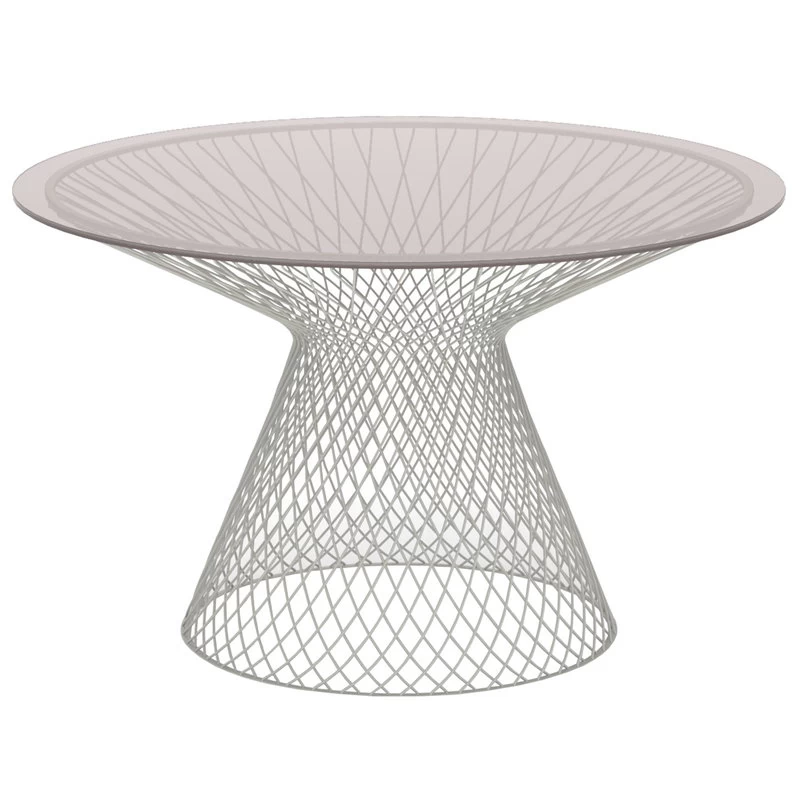 Der Tisch Heaven von Emu erhält seine unverwechselbare, himmlisch luftige Optik durch das geflochtene Stahlgestell und die transparente Glastischplatte. Der von Jean-Marie Massaud entworfene Tisch Heaven passt mit seinem harmonischen und eleganten Ausdruck perfekt in ein modernes Zuhause, sowohl im Innen- als auch im Außenbereich.