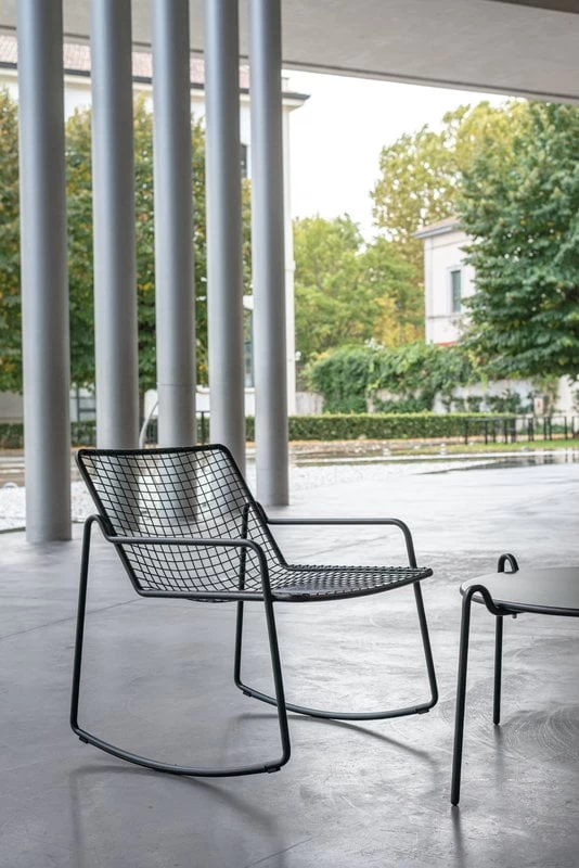 Der Schaukel-Loungesessel Rio von Emu verleiht der Terrasse oder einem Wohnzimmer mit seiner unverwechselbaren Optik eine Portion Stil. Die leicht geschwungenen Beine erhöhen den Komfort des Schaukelstuhls noch weiter und laden zum sofortigen Entspannen ein. Entworfen von Emanuel Gargano und Anton Cristell und aus hochwertigem Stahl gefertigt, passt der praktische Schaukelstuhl mit seinem modernen Ausdruck mühelos zu jedem Stil.