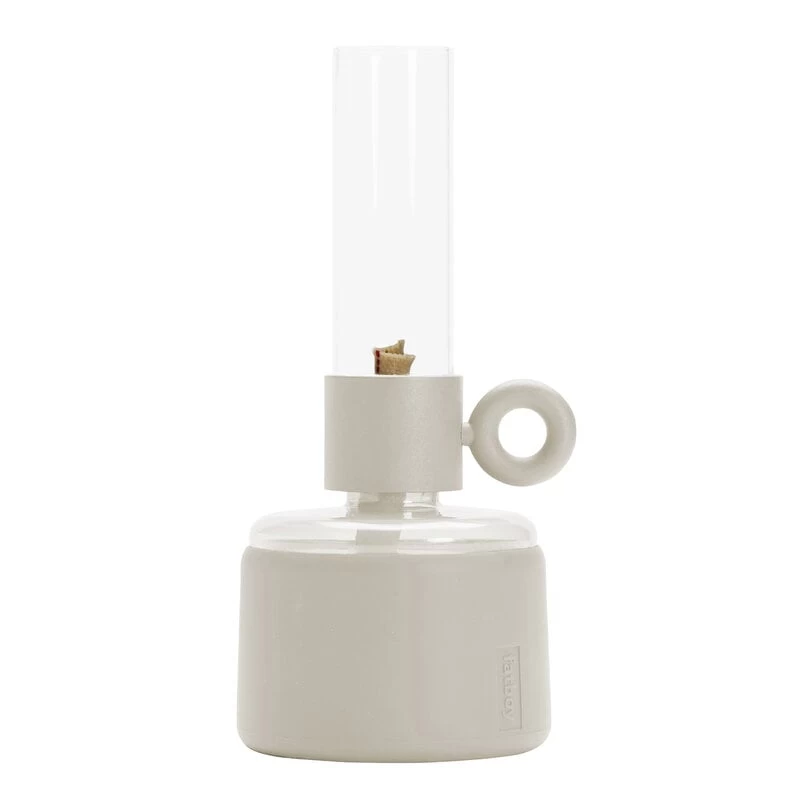 Die Flamtastique XS von der niederländischen Marke Fatboy ist die verspielte Interpretation einer traditionellen Öllampe. Die Öllampe besteht aus langlebigem Borosilikatglas und Aluminium, einschließlich einer matten Silikonhülle, und sorgt das ganze Jahr über für eine angenehme Atmosphäre. Bei warmem Wetter ist sie auch für den Außenbereich auf dem Balkon oder der Terrasse geeignet – vorausgesetzt, Sie bringen die Öllampe nachts wieder mit ins Haus. Der Sockel der Flamtastique XS ist teils durchsichtig, sodass sich leicht überprüfen lässt, ob mehr Lampenöl benötigt wird. Der runde Griff hat zwei Funktionen: Er kann zum Tragen der Lampe verwendet sowie gedreht werden, um den Docht zu verlängern.