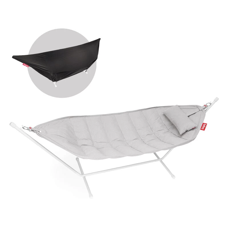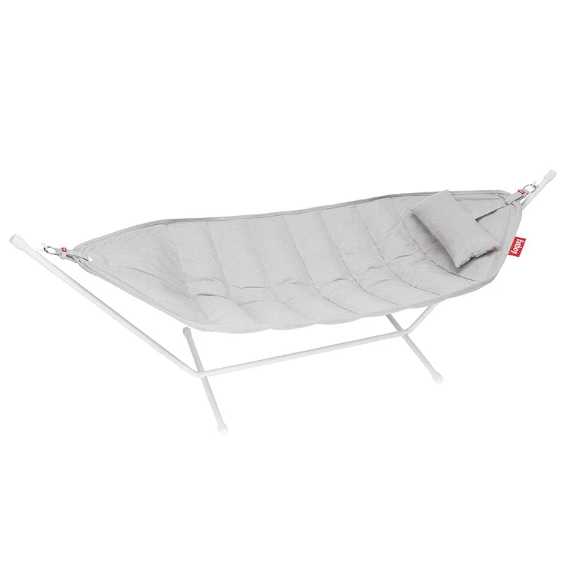 Die „Headdemock Superb Deluxe“-Hängematte von Fatboy ist perfekt zum Faulenzen an entspannten Sommertagen geeignet. Die moderne Hängematte benötigt keine Bäume in der Nähe, da sie mit einem stabilen Gestell ausgestattet ist. Sie können sie problemlos an Ihrem Lieblingsplatz aufstellen, egal ob auf der Terrasse, auf dem Balkon, im Garten oder am Strand.