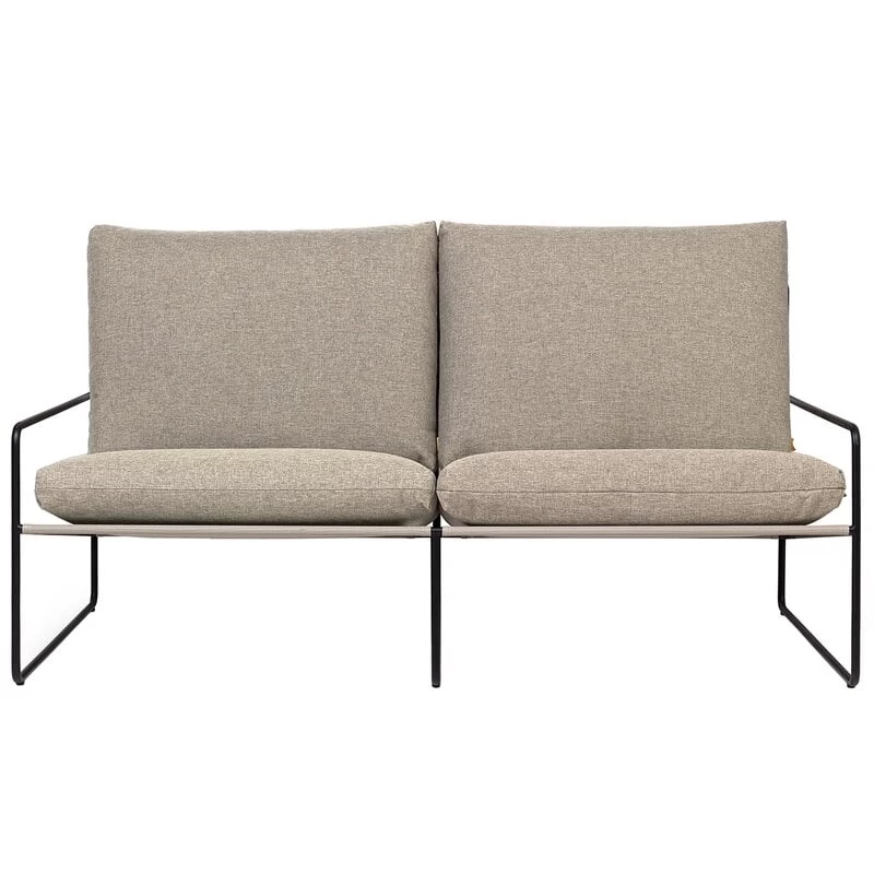 Das Desert-2-Sitzer-Sofa ist Teil der Desert-Kollektion von ferm LIVING, die von einem echten Gartenklassiker, dem Liegestuhl, inspiriert ist. ferm LIVING hat den Stuhl in ein Sofa mit geometrischer Form umgestaltet, die auf einem schlanken Metallgestell und einer entspannten, niedrigen Sitzfläche mit bequemen Kissen beruht.