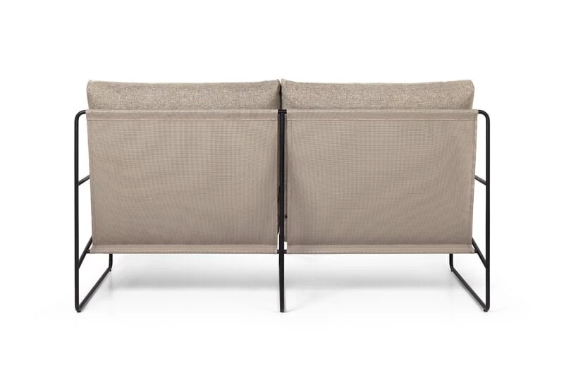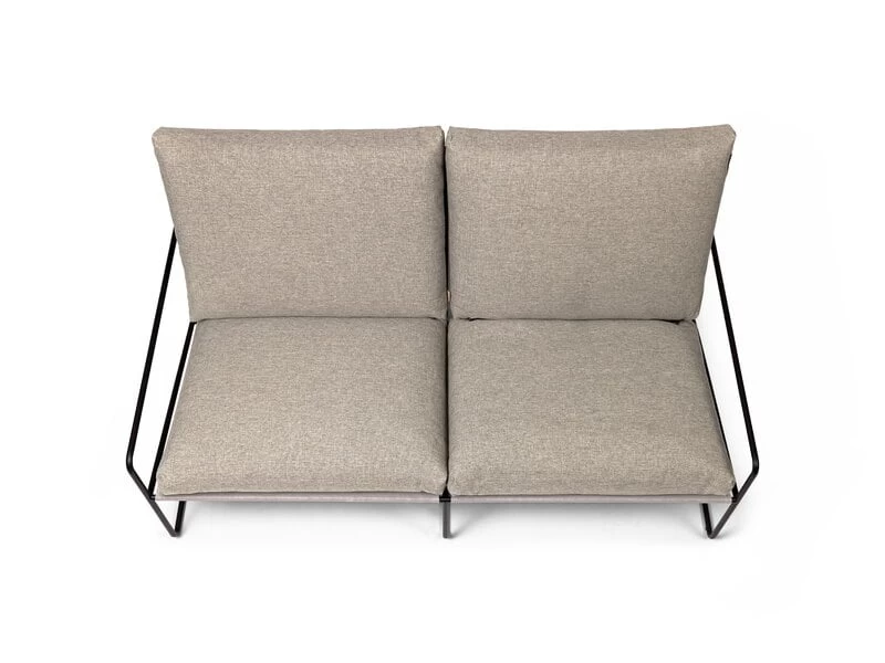 Das minimalistische Gartensofa wurde mit Rücksicht auf das unbeständige Sommerwetter entworfen: Das Gestell aus galvanisiertem Stahl ist rostfrei, und die Kissen sind wasser-, UV- und fleckenbeständig. Obwohl das Sofa ideal für den Einsatz im Freien auf der Terrasse oder dem Balkon geeignet ist, macht das Desert-Sofa auch in Innenräumen, wie einem kleinen Wohnzimmer, eine gute Figur.