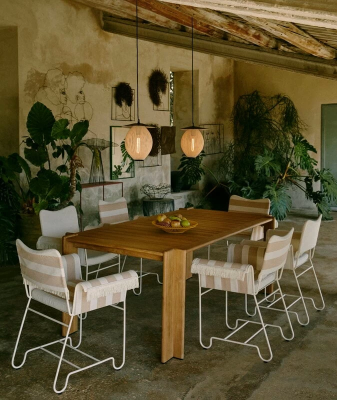Die Tropique-Outdoor-Kollektion wurde in den 1950ern entworfen und von GUBI im Rahmen des Außenbereich-Sortiments 2022 neu aufgelegt. Auch wenn das Tropique-Design mehrere Jahrzehnte lang nicht produziert wurde, so gehört es mit seiner dekadenten Ästhetik im Côte-d’Azur-Stil zur Mitte des 20. Jahrhunderts doch zu den wenigen Kollektionen, die Matégots frühe Karriere maßgeblich geprägt haben. Die Möbelserie weckt die Vorstellung von Luxushotels, Champagnertürmen und wunderschönen Aussichten auf das Mittelmeer.