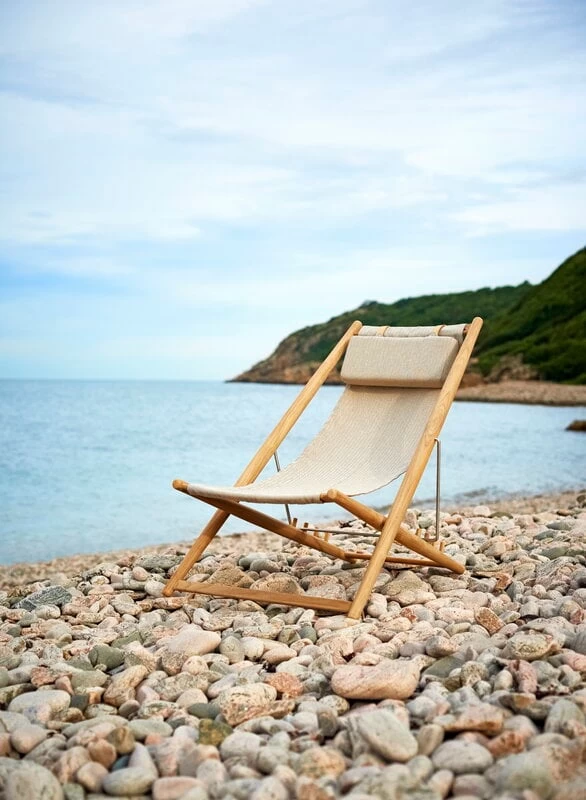 Der Loungesessel H55 von Skargaarden wurde 1954 von Björn Hultén entworfen. Seine raffinierte Eleganz ist auch heute noch modern. Dank seiner Verstellbarkeit, der bequemen Stoffsitzfläche und des Nackenkissens bietet der H55 maximalen Sitzkomfort, während Sie die Sonne genießen. Das Sesselgestell ist aus schönem, lebhaftem Teakholz gefertigt. Bei Bedarf lässt sich der Stuhl H55 zur Lagerung einfach zusammenklappen. Das natürliche Material Stramin ist nicht wasserdicht, daher muss der Sessel im Innenbereich gelagert werden.