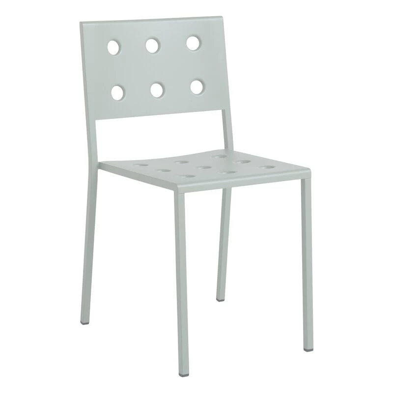Der Balcony-Dining-Stuhl von HAY ist Teil einer raffinierten Outdoor-Möbelkollektion, die von den Bouroullec-Brüdern entworfen wurde. Die aus dünnem Stahlblech gefertigten, eleganten Outdoor-Stühle und -Bänke der Balcony-Reihe sind unglaublich leicht und lassen sich mühelos am gewünschten Ort platzieren. Die perfekten Ergänzung für Garten, Innenhof, Terrasse oder Balkon. Die runden Löcher im Stahlblech erfüllen mehrere Zwecke: Zum einen verleihen sie dem geometrischen Design eine individuelle und weiche Note, zum anderen lassen sie Regenwasser an der Oberfläche leichter ablaufen und verstärken die Möbelstruktur. Eine wetterbeständige Beschichtung macht die Balcony-Kollektion außerdem besonders pflegeleicht.