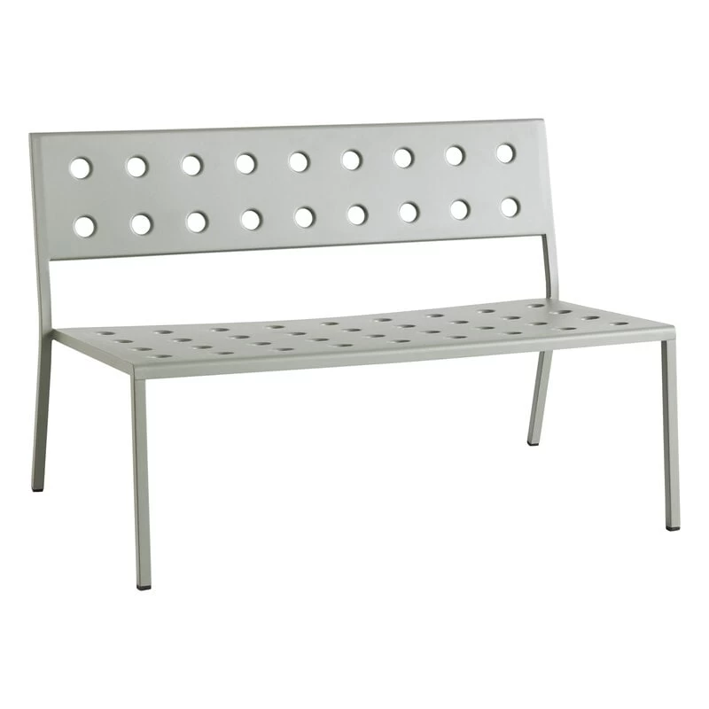 Die Balcony-Loungebank von HAY ist Teil einer raffinierten Outdoor-Möbelkollektion, die von den Bouroullec-Brüdern entworfen wurde. Die aus dünnem Stahlblech gefertigten, eleganten Outdoor-Bänke und -Stühle der Balcony-Reihe sind unglaublich leicht und lassen sich mühelos am gewünschten Ort platzieren. Die perfekten Begleiter für Garten, Innenhof, Terrasse oder Balkon. Die runden Löcher im Stahlblech erfüllen mehrere Zwecke: Zum einen verleihen sie dem geometrischen Design eine individuelle und weiche Note, zum anderen lassen sie Regenwasser an der Oberfläche der Bank leichter ablaufen und verstärken die Möbelstruktur. Eine wetterbeständige Beschichtung macht die Balcony-Kollektion außerdem besonders pflegeleicht.