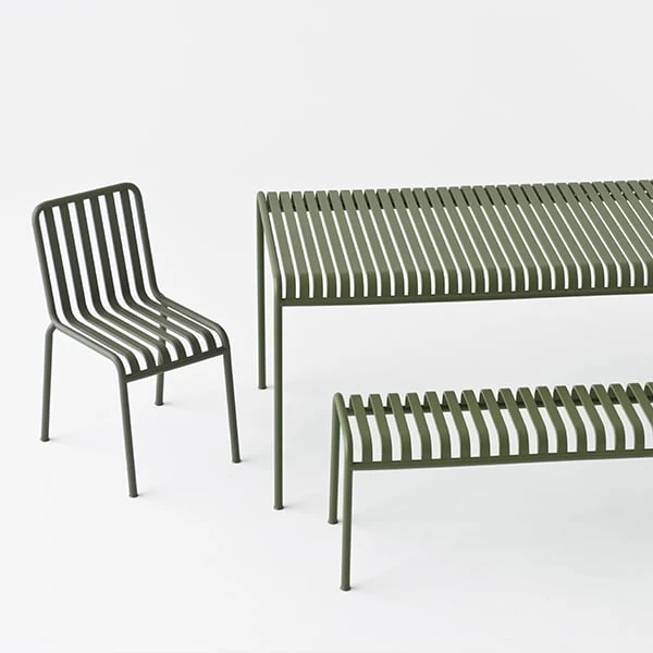 Die schlichte und dennoch robuste Bank Palissade ist Teil der vielseitigen Outdoormöbel-Kollektion von HAY. Die Palissade-Outdoormöbel zeichnen sich durch ein starkes, grafisches Design aus, das aus einfachen Stahlrohren und -latten besteht. Ronan und Erwan Bouroullec arbeiteten zwei Jahre lang an der Kollektion und schufen eine Reihe von ausgewogenen Stücken, die sich gut für Terrassen, Balkone, Gärten, Cafés und öffentliche Räume eignen. Die Stühle, Tische und Bänke von Palissade sind robust, aber elegant und perfekt für den Außenbereich geeignet, da sich Wind und Wasser problemlos durch das verzinkte Stahlgestell bewegen können. Die Palissade-Möbel haben ein zeitloses Design, und ihre gedeckten Farben tragen zu einem zeitlosen und vielseitigen Erscheinungsbild bei.