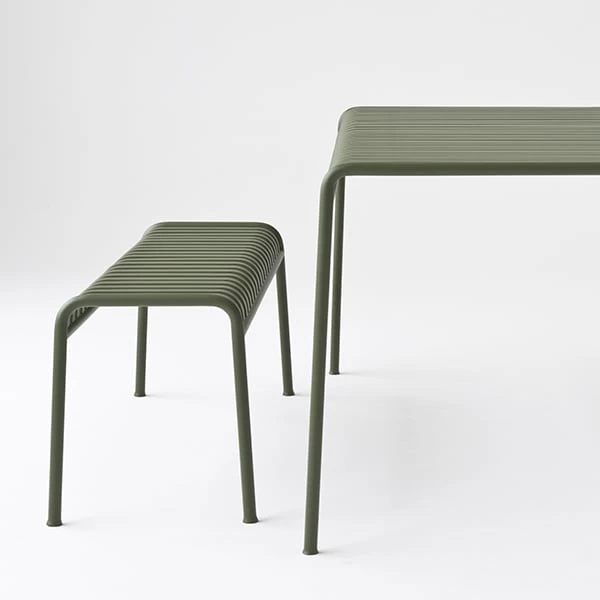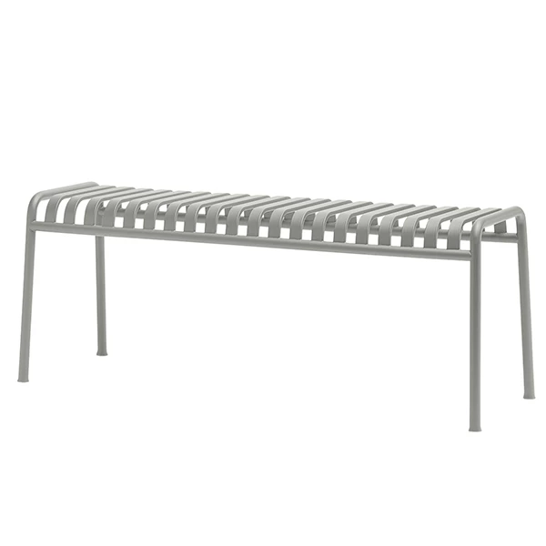 Die schlichte und dennoch robuste Bank Palissade ist Teil der vielseitigen Outdoormöbel-Kollektion von HAY. Die Palissade-Outdoormöbel zeichnen sich durch ein starkes, grafisches Design aus, das aus einfachen Stahlrohren und -latten besteht. Ronan und Erwan Bouroullec arbeiteten zwei Jahre lang an der Kollektion und schufen eine Reihe von ausgewogenen Stücken, die sich gut für Terrassen, Balkone, Gärten, Cafés und öffentliche Räume eignen. Die Stühle, Tische und Bänke von Palissade sind robust, aber elegant und perfekt für den Außenbereich geeignet, da sich Wind und Wasser problemlos durch das verzinkte Stahlgestell bewegen können. Die Palissade-Möbel haben ein zeitloses Design, und ihre gedeckten Farben tragen zu einem zeitlosen und vielseitigen Erscheinungsbild bei.