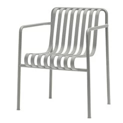 Der schlichte und dennoch robuste Esstischstuhl Palissade ist Teil der vielseitigen Outdoormöbel-Kollektion von HAY. Die Palissade-Outdoormöbel zeichnen sich durch ein starkes, grafisches Design aus, das aus einfachen Stahlrohren und -latten besteht. Ronan und Erwan Bouroullec arbeiteten zwei Jahre lang an der Kollektion und schufen eine Reihe von ausgewogenen Stücken, die sich gut für Terrassen, Balkone, Gärten, Cafés und öffentliche Räume eignen. Die Stühle, Tische und Bänke von Palissade sind robust, aber elegant und perfekt für den Außenbereich geeignet, da sich Wind und Wasser problemlos durch das verzinkte Stahlgestell bewegen können. Die Palissade-Möbel haben ein zeitloses Design, und ihre gedeckten Farben tragen zu einem zeitlosen und vielseitigen Erscheinungsbild bei.