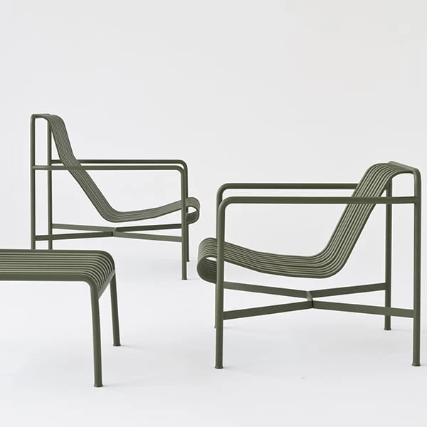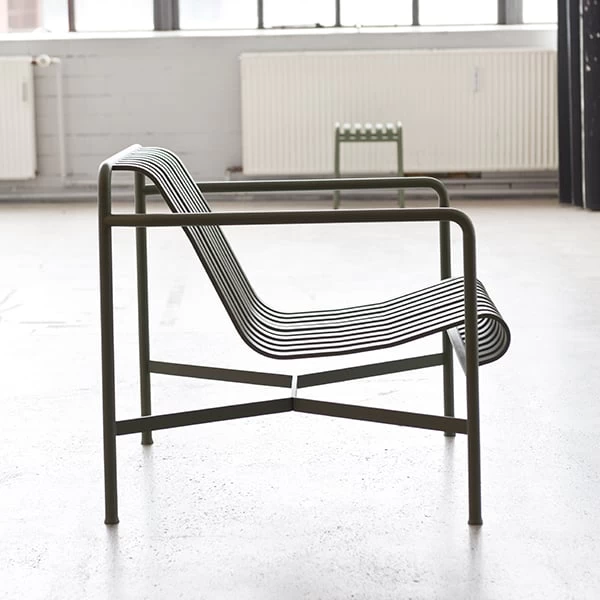 Der schlichte und dennoch robuste Stuhl Palissade ist Teil der vielseitigen Outdoormöbel-Kollektion von HAY. Die Palissade-Outdoormöbel zeichnen sich durch ein starkes, grafisches Design aus, das aus einfachen Stahlrohren und -latten besteht. Ronan und Erwan Bouroullec arbeiteten zwei Jahre lang an der Kollektion und schufen eine Reihe von ausgewogenen Stücken, die sich gut für Terrassen, Balkone, Gärten, Cafés und öffentliche Räume eignen. Die Stühle, Tische und Bänke von Palissade sind robust, aber elegant und perfekt für den Außenbereich geeignet, da sich Wind und Wasser problemlos durch das verzinkte Stahlgestell bewegen können. Die Palissade-Möbel haben ein zeitloses Design, und ihre gedeckten Farben tragen zu einem zeitlosen und vielseitigen Erscheinungsbild bei.
