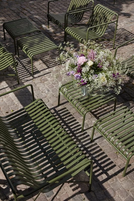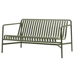 Das schlichte und dennoch robuste Loungesofa Palissade ist Teil der vielseitigen Outdoormöbel-Kollektion von HAY. Die Palissade-Outdoormöbel zeichnen sich durch ein starkes, grafisches Design aus, das aus einfachen Stahlrohren und -latten besteht. Ronan und Erwan Bouroullec arbeiteten zwei Jahre lang an der Kollektion und schufen eine Reihe von ausgewogenen Stücken, die sich gut für Terrassen, Balkone, Gärten, Cafés und öffentliche Räume eignen. Die Stühle, Tische und Bänke von Palissade sind robust, aber elegant und perfekt für den Außenbereich geeignet, da sich Wind und Wasser problemlos durch das verzinkte Stahlgestell bewegen können. Die Palissade-Möbel haben ein zeitloses Design, und ihre gedeckten Farben tragen zu einem zeitlosen und vielseitigen Erscheinungsbild bei.