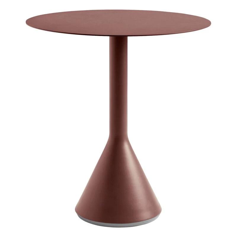 Der Palissade-Cone-Tisch kombiniert ein kegelförmiges Tischbein mit einer dünnen Stahlplatte zu einer gewagten, vielseitigen Ergänzung der Outdoor-Möbelkollektion von HAY. Die Palissade-Outdoormöbel zeichnen sich durch ein starkes, grafisches Design aus, das aus einfachen Stahlrohren und -latten besteht.