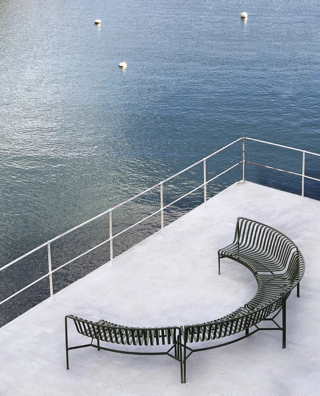 Die Palissade-Outdoormöbel zeichnen sich durch ein starkes, grafisches Design aus, das aus einfachen Stahlrohren und -latten besteht. Ronan und Erwan Bouroullec schufen eine Reihe von schlichten, ausgewogenen Stücken, die sich gut für Terrassen, Balkone, Gärten, Cafés und öffentliche Räume eignen. Die Stühle, Tische und Bänke von Palissade sind robust, aber elegant und perfekt für den Außenbereich geeignet, da sich Wind und Wasser problemlos durch das verzinkte Stahlgestell bewegen können. Die Palissade-Möbel haben ein zeitloses Design, und ihre gedeckten Farben tragen zu einem zeitlosen und vielseitigen Erscheinungsbild bei.
