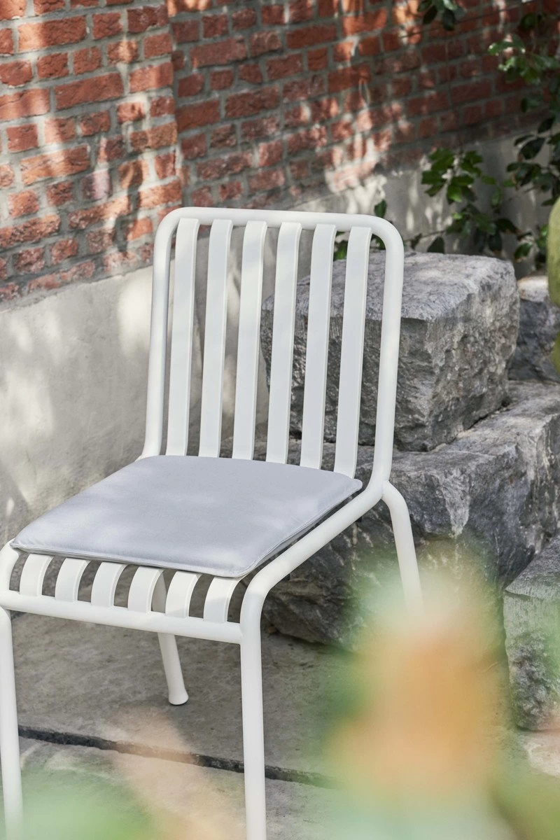 Dieses Sitzkissen passt zum Palissade-Stuhl und -Sessel von HAY. Das schlichte, gepolsterte Kissen ist mit wasserfestem Markisenstoff bezogen.