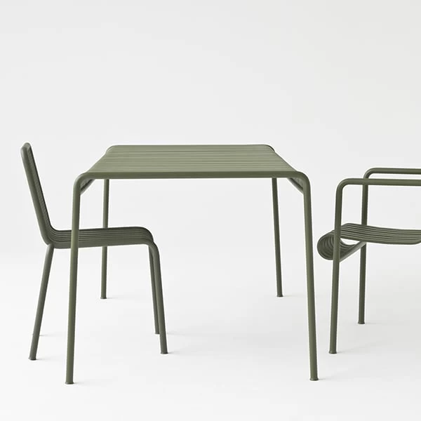 Der schlichte und dennoch robuste Tisch Palissade ist Teil der vielseitigen Outdoormöbel-Kollektion von HAY. Die Palissade-Outdoormöbel zeichnen sich durch ein starkes, grafisches Design aus, das aus einfachen Stahlrohren und -latten besteht. Ronan und Erwan Bouroullec arbeiteten zwei Jahre lang an der Kollektion und schufen eine Reihe von ausgewogenen Stücken, die sich gut für Terrassen, Balkone, Gärten, Cafés und öffentliche Räume eignen. Die Stühle, Tische und Bänke von Palissade sind robust, aber elegant und perfekt für den Außenbereich geeignet, da sich Wind und Wasser problemlos durch das verzinkte Stahlgestell bewegen können. Die Palissade-Möbel haben ein zeitloses Design, und ihre gedeckten Farben tragen zu einem zeitlosen und vielseitigen Erscheinungsbild bei.