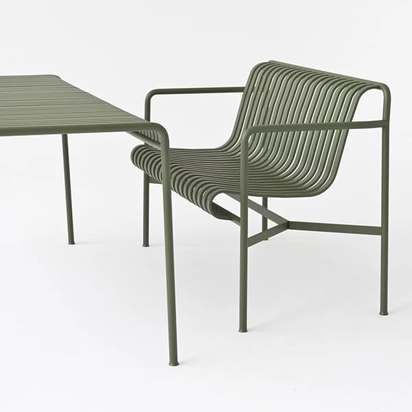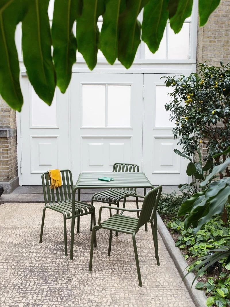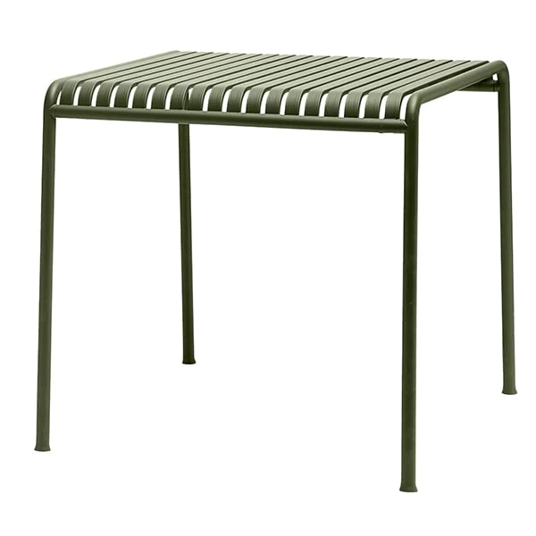 Der schlichte und dennoch robuste Tisch Palissade ist Teil der vielseitigen Outdoormöbel-Kollektion von HAY. Die Palissade-Outdoormöbel zeichnen sich durch ein starkes, grafisches Design aus, das aus einfachen Stahlrohren und -latten besteht. Ronan und Erwan Bouroullec arbeiteten zwei Jahre lang an der Kollektion und schufen eine Reihe von ausgewogenen Stücken, die sich gut für Terrassen, Balkone, Gärten, Cafés und öffentliche Räume eignen. Die Stühle, Tische und Bänke von Palissade sind robust, aber elegant und perfekt für den Außenbereich geeignet, da sich Wind und Wasser problemlos durch das verzinkte Stahlgestell bewegen können. Die Palissade-Möbel haben ein zeitloses Design, und ihre gedeckten Farben tragen zu einem zeitlosen und vielseitigen Erscheinungsbild bei.