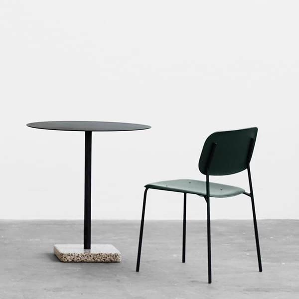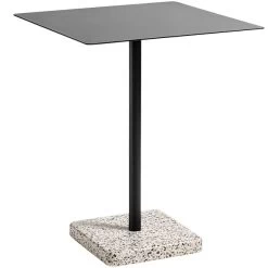 Der Tisch Terrazzo von HAY ist ein minimalistisches Möbelstück, das durch seinen lebendigen Terrazzo-Tischfuß besticht. Der Designer Daniel Enoksson entdeckte vor Jahren das haltbare, betonähnliche Material, das auch in den Bahnsteigen der Stockholmer U-Bahn zu sehen ist, und fand es schade, dass es in der Möbelindustrie kaum verwendet wurde. Er entwarf einen einfachen Stahltisch, der sowohl für den Innen- als auch für den Außenbereich geeignet war. Ein Terrazzoblock sorgt dafür, dass der Tisch Terrazzo aufrecht bleibt, und bildet einen spielerischen Kontrast zur reduzierten Tischplatte und dem Bein.