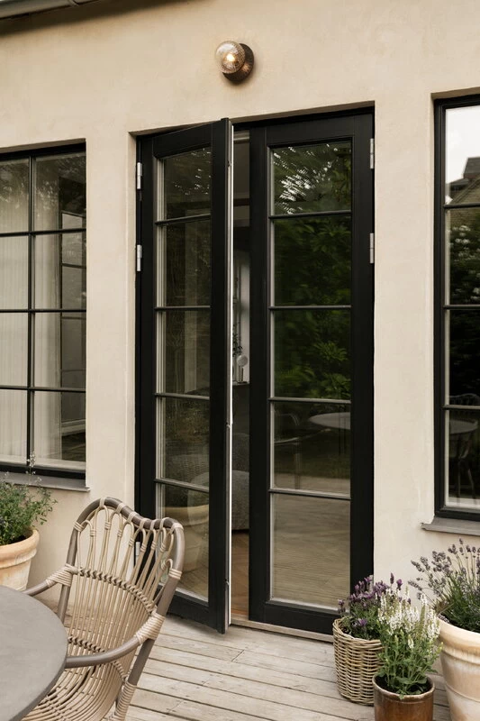 Die Liila-1-Outdoor-Leuchte von Nuura ist eine vielseitige Außenleuchte, die sowohl an der Decke als auch an der Wand montiert werden kann. Die von der preisgekrönten dänischen Beleuchtungsdesignerin Sofie Refer entworfene Liila-Leuchte besteht aus einer runden, mundgeblasenen Glaskugel und einem robusten und doch anmutigen Metallkörper. Durch den transparenten, strukturierten Schirm entsteht ein reizvolles, ornamentales Muster, das die Leuchte umgibt.