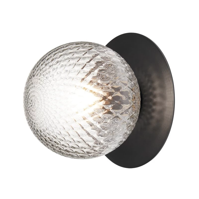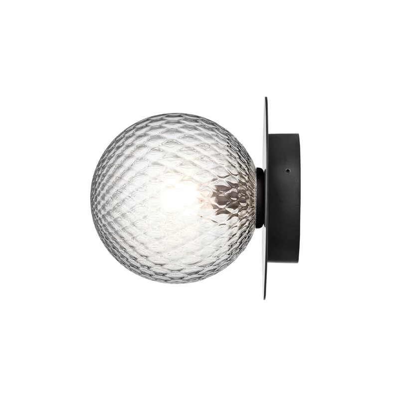 Die Liila-1-Outdoor-Leuchte von Nuura ist eine vielseitige Außenleuchte, die sowohl an der Decke als auch an der Wand montiert werden kann. Die von der preisgekrönten dänischen Beleuchtungsdesignerin Sofie Refer entworfene Liila-Leuchte besteht aus einer runden, mundgeblasenen Glaskugel und einem robusten und doch anmutigen Metallkörper. Durch den transparenten, strukturierten Schirm entsteht ein reizvolles, ornamentales Muster, das die Leuchte umgibt.