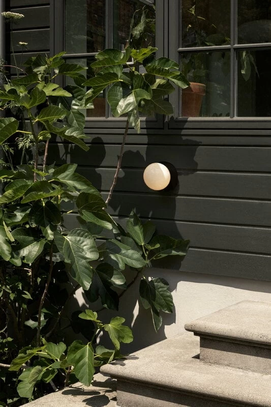Die Liila-1-Outdoor-Leuchte von Nuura ist eine vielseitige Außenleuchte, die sowohl an der Decke als auch an der Wand montiert werden kann. Die von der preisgekrönten dänischen Beleuchtungsdesignerin Sofie Refer entworfene Liila-Leuchte besteht aus einer runden, mundgeblasenen Glaskugel und einem robusten und doch anmutigen Metallkörper. Der opalweiße Schirm sorgt für einen weichen und gleichmäßig gestreuten Lichtschein rund um die Leuchte.