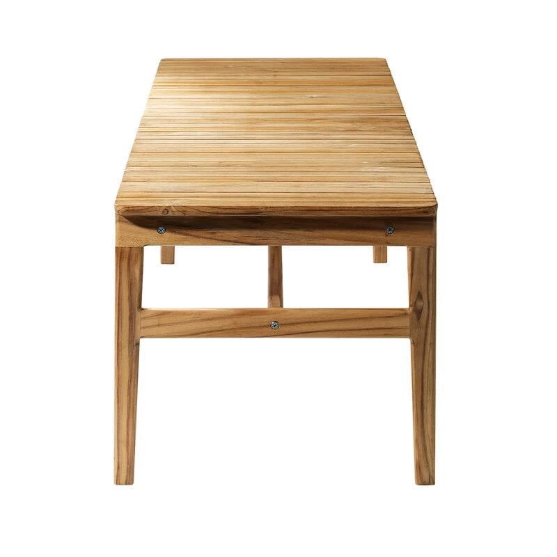 Die Sammen-Outdoor-Möbel von FDB Møbler strahlen sowohl tadellose Handwerkskunst als auch minimalistische nordische Eleganz aus, ganz im Sinne der Tradition der dänischen Marke. Das Ziel des Designers Thomas E. Alken war es, ein Terrassenmöbel-Set zu entwerfen, das genauso hochwertig und stilvoll ist wie die Innenmöbel von FDB Møbler, weshalb er Teakholz als Material für die Möbel wählte. Das zeitlose und langlebige Naturmaterial altert wunderschön und entwickelt mit der Zeit eine schöne Patina, bei der sich der goldbraune Farbton in ein wunderschönes Silbergrau verwandelt. Der ursprüngliche Farbton der Möbel kann aber auch durch Schutzabdeckungen und regelmäßiges Ölen der Möbel erhalten werden. Richtig gepflegt, halten Teakholzmöbel jahre- und jahrzehntelang.