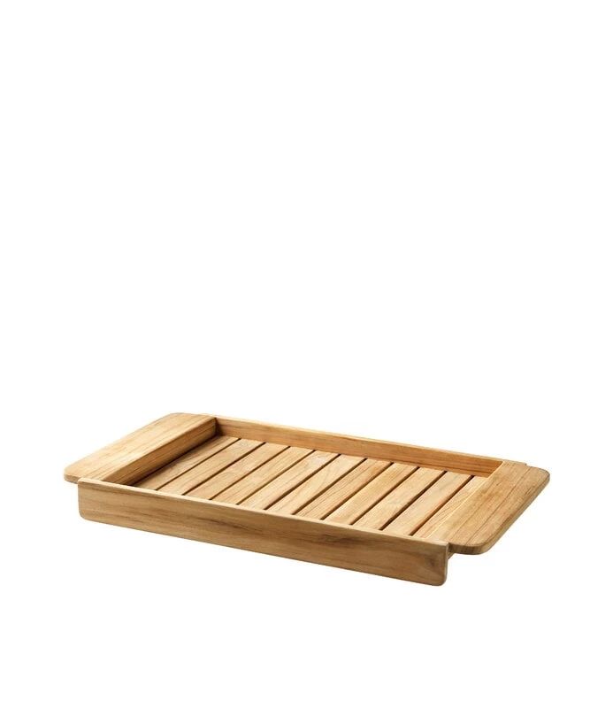 Das Sammen-Tablett von FDB Møbler sorgt für ein bisschen Luxus beim Frühstück auf dem Balkon oder bei Drinks auf der Terrasse. Das Holztablett ist so gestaltet, dass es beim Tragen von der Küche in den Garten gut in der Hand liegt.