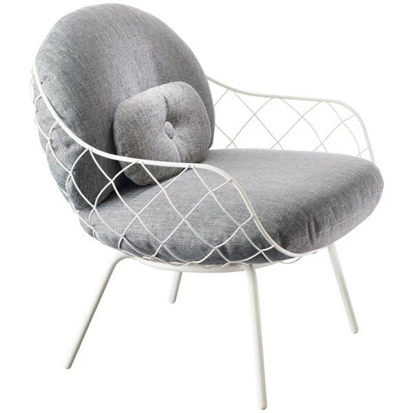 Die Piña-Kollektion von Magis wurde vom Spanier Jaime Hayón entworfen, der für seine einzigartigen, verspielten Designs bekannt ist. Die Serie umfasst bequeme Stühle und Tische für den Innen- und Außenbereich. Das kataphoretisch behandelte Gestell ist perfekt geeignet für Gärten, Balkone und Terrassen, während das unbehandelte Gestell und die Holzbeine eher für den Innenbereich geeignet sind. Das Gewicht des Sitzenden drückt die Kissen gegen den geflochtenen Metallrahmen des Stuhls und erzeugt so einen witzigen visuellen Effekt von Tannenzapfen- oder klassischer Capitonné-Polsterung. Bei den Tischen sorgt das schlanke Gestell für eine angenehme Leichtigkeit. Schaffen Sie eine einladende Sitzecke mit Piña!