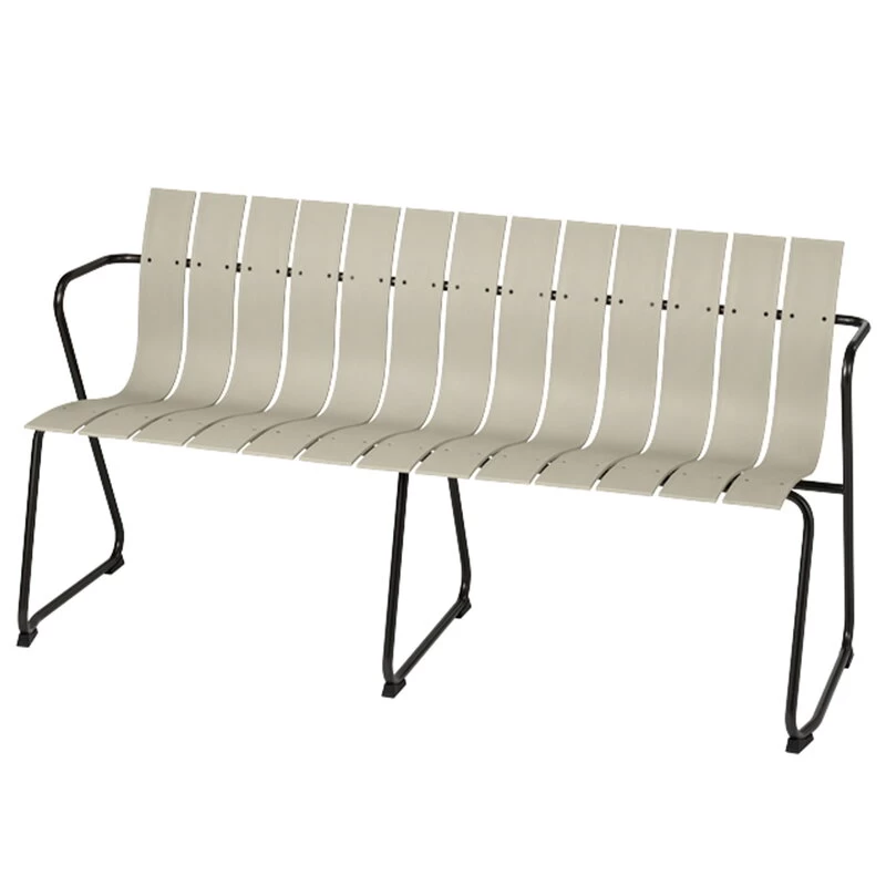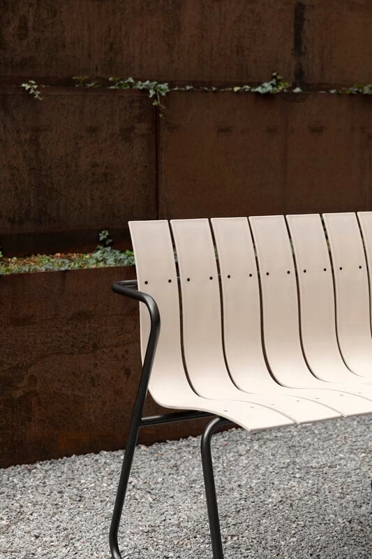 Die Ocean-Gartenbank des dänischen Herstellers Mater ist eine Neuinterpretation der 1955 von Nanna & Jørgen Ditzel entworfenen Gartenmöbelserie. Neben der außergewöhnlich harmonischen Form sind es auch die Materialien, die die Ocean-Serie so einzigartig machen: Die Kollektion wurde aus Meeresmüllplastik und recycelten Fischnetzen hergestellt. Die Sitz- und Tischplatten bestehen aus stabilen Kunststofflamellen und das luftige Design wird durch grau beschichtete Metallgestelle ergänzt. Alle Komponenten sind recycelbar. Die Ocean-Kollektion wurde 2019 mit dem Wallpaper* Design Award ausgezeichnet.
