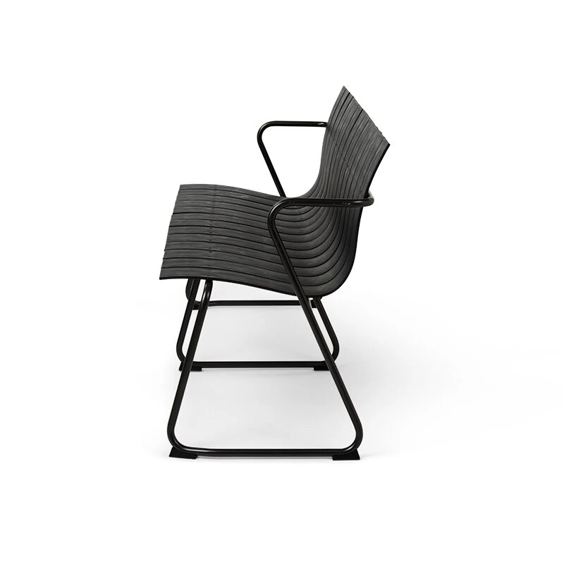 Die Ocean-Gartenbank des dänischen Herstellers Mater ist eine Neuinterpretation der 1955 von Nanna & Jørgen Ditzel entworfenen Gartenmöbelserie. Neben der außergewöhnlich harmonischen Form sind es auch die Materialien, die die Ocean-Serie so einzigartig machen: Die Kollektion wurde aus Meeresmüllplastik und recycelten Fischnetzen hergestellt. Die Sitz- und Tischplatten bestehen aus stabilen Kunststofflamellen und das luftige Design wird durch grau beschichtete Metallgestelle ergänzt. Alle Komponenten sind recycelbar. Die Ocean-Kollektion wurde 2019 mit dem Wallpaper* Design Award ausgezeichnet.