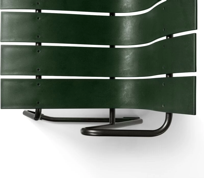 Die Ocean-OC2-Bank der dänischen Marke Mater ist Teil der preisgekrönten Ocean-Kollektion, die eine Neuinterpretation der 1955 von Nanna und Jørgen Ditzel entworfenen Outdoor-Möbel-Reihe ist. Neben der außergewöhnlich harmonischen Form ist es insbesondere das Material, das die Ocean-OC2-Reihe so einzigartig macht: Die Kollektion wurde aus recycelten Kunststoff-Bierfässern in Zusammenarbeit mit dem dänischen Bierhersteller Carlsberg gefertigt. Sitze und Tischplatten werden aus robusten Kunststofflatten geformt, die den typisch dunkelgrünen Farbton aufweisen. Das luftige Design wird durch einen Metallrahmen in Rotgussoptik ergänzt. Alle Komponenten sind recycelbar.