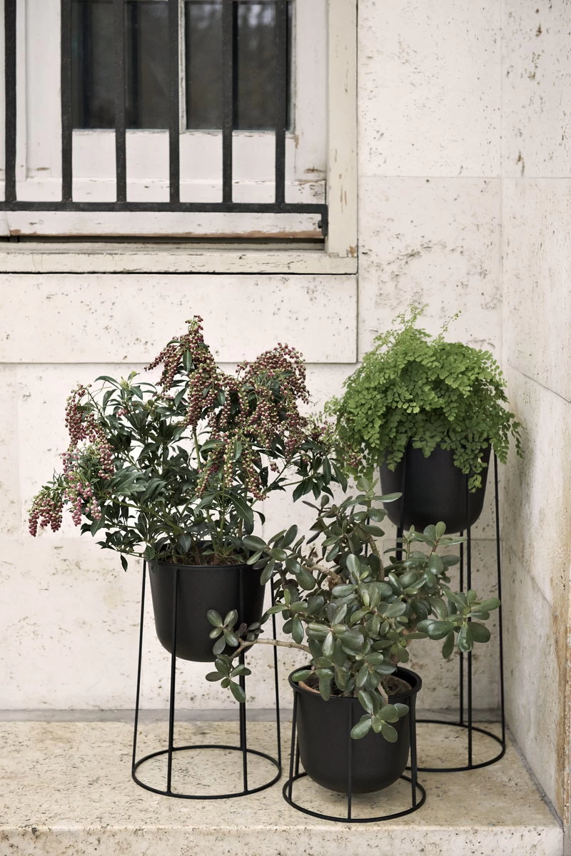 Norm Architects ließ sich für die minimalistischen Wire-Produkte von einem japanisch angehauchten Garten in Los Angeles inspirieren, der speziell angefertigte stehende und hängende Displays mit Blumen und Licht ausstellte. Ob für Pflanzen oder als elegante Beistelltische, die Wire-Kollektion ist eine großartige Bereicherung für moderne Wohnbereiche im Innenbereich und auf der Terrasse oder dem Balkon.