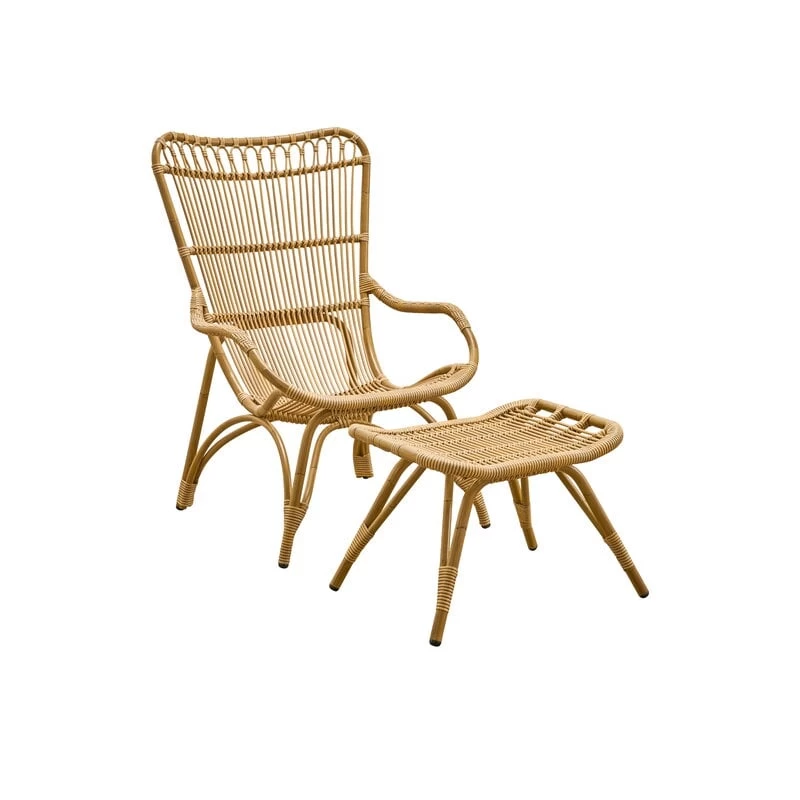 Der Monet-Fußhocker aus der Exterior-Kollektion von Sika-Design ist ein schöner Hocker, der von den alten Zeichnungen von Sika-Design aus den 1950er und 1960er Jahren inspiriert wurde. Das geschwungene Design und die feine Flechtung des Monet-Fußhockers ergänzen den Monet-Stuhl hervorragend.