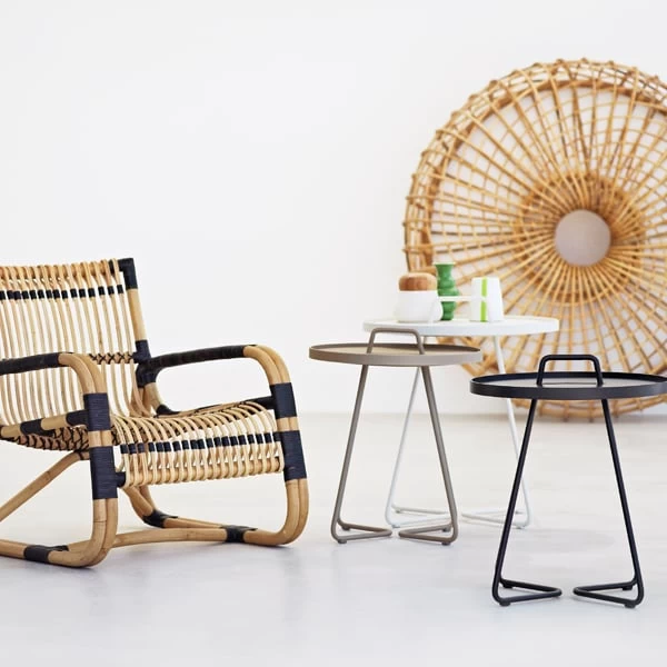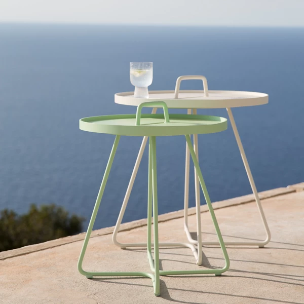 Der On-the-move von Cane-line ist ein fröhlicher und multifunktionaler Beistelltisch, der sowohl für den Innen- als auch für den Außenbereich geeignet ist. Aus robustem und leichtem Aluminium gefertigt und mit einem Griff ausgestattet lässt sich On-the-move leicht von einem Ort zum anderen bewegen. Die abnehmbare Tischplatte fungiert auch als Tablett, das abgehoben und separat verwendet werden kann. On-the-move ist ein perfekter Beistelltisch für Terrasse, Balkon oder Garten, aber auch ein praktischer, moderner Sofatisch im Wohnzimmer. Der Tisch wurde von dem dänischen Designbüro Stand+Hvass entworfen.