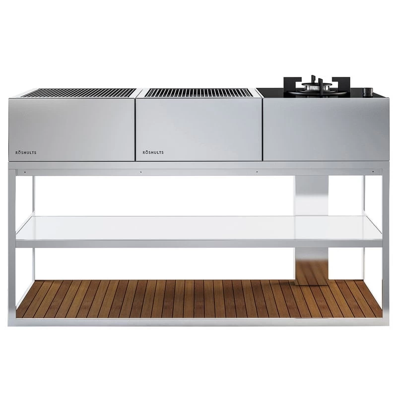 Der Open Kitchen-Teakholzboden von Röshults ergänzt Ihre Outdoor-Küche mit einem warmen Touch von Teakholz. Der Teakholzboden ist für die Rahmen von Open Kitchen ausgelegt.
