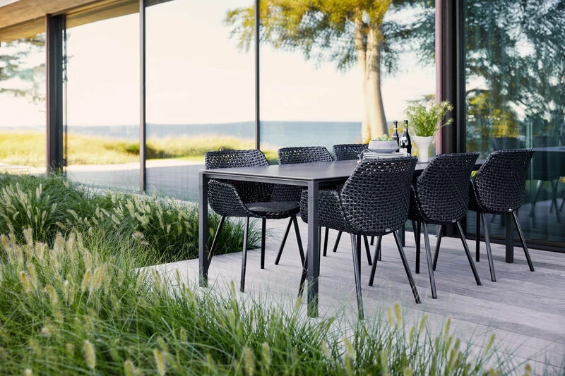 Der Pure-Esstisch von Cane-line wurde von Foersom & Hiort-Lorenzen entworfen und ist ein schlichter und einfacher Tisch für den Innen- und Außenbereich. Der Pure-Tisch besteht aus einem pulverbeschichteten Aluminiumgestell und einer anschaulichen Tischplatte aus Keramik, einem zu 100 % natürlichen Produkt. Trotz seiner robusten Materialien besticht der Pure-Tisch durch sein leichtes, fast schwebend wirkendes Design mit einem modernen und zeitlos skandinavischen Flair. Dank seines minimalistischen Charakters lässt sich der Tisch leicht mit vielen verschiedenen Stühlen kombinieren.