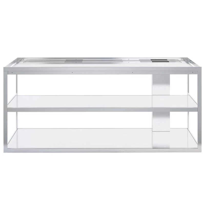 Open Kitchen-Rahmen 150 von Röshults ist für 3 Teile der Modul-Kollektion ausgelegt. Die stabilen Ablagen bieten Platz für Grillwerkzeug und Geschirr Ihrer Outdoor-Küche.