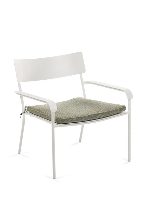 Das Sitzkissen für den Loungesessel August trägt zum hohen Komfort des Gartenstuhls bei. Das Kissen wird mit Lederbändern am Stuhl befestigt.