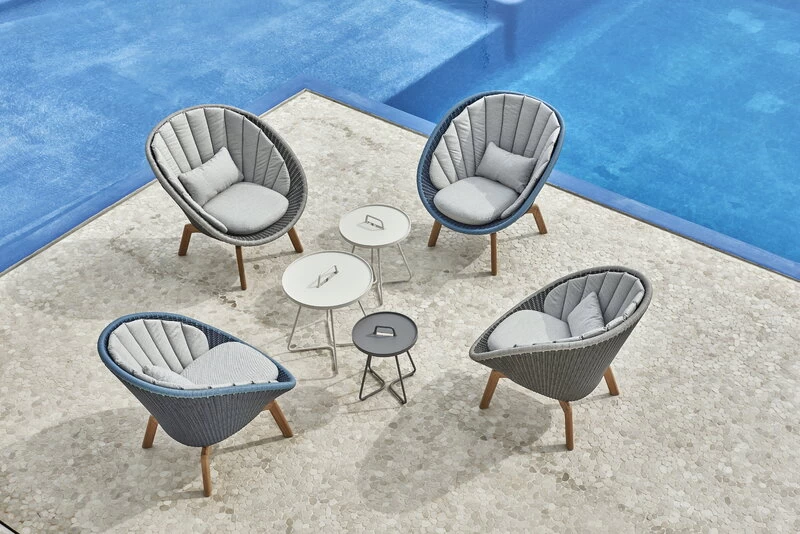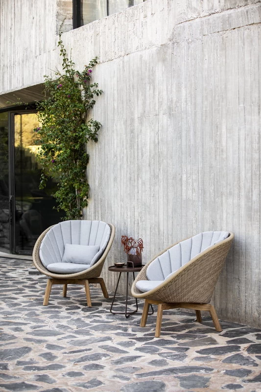 Dieses Sitzkissenset ist für den Peacock-Loungesessel von Cane-line bestimmt. Die Kissen sind aus dem Natté-Polyethylengewebe von Cane-line gefertigt, das von Sunbrella hergestellt wird und speziell für den Außenbereich und wechselnde Wetterbedingungen entwickelt wurde. Der Stoff wird mit dem Solution-Dye-Verfahren gefärbt, bei dem nicht der fertige Stoff, sondern das Rohmaterial selbst gefärbt wird. Das Ergebnis ist eine gleichmäßige, dauerhafte Farbe, die weit weniger Chemikalien benötigt als traditionelle Färbetechniken.