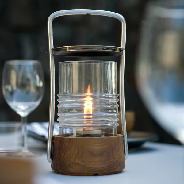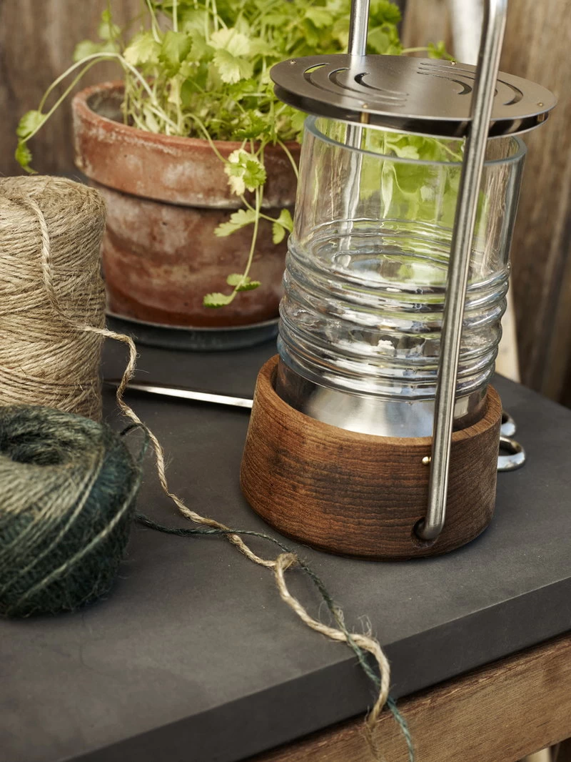 Die Öllampe Bollard von Skagerak hat einen schönen Glaskamin, der den in Leuchttürmen verwendeten Fresnel-Linsen ähnelt. Da Gestell und Sockel aus Edelstahl und Teakholz gefertigt sind, ist die Leuchte gut für den Außenbereich geeignet. Die Öllampe Bollard ist ideal geeignet für dunkle Nächte, da sie eine warme und angenehme Atmosphäre schafft – zünden Sie den Docht an und genießen Sie die gemütliche Stimmung.