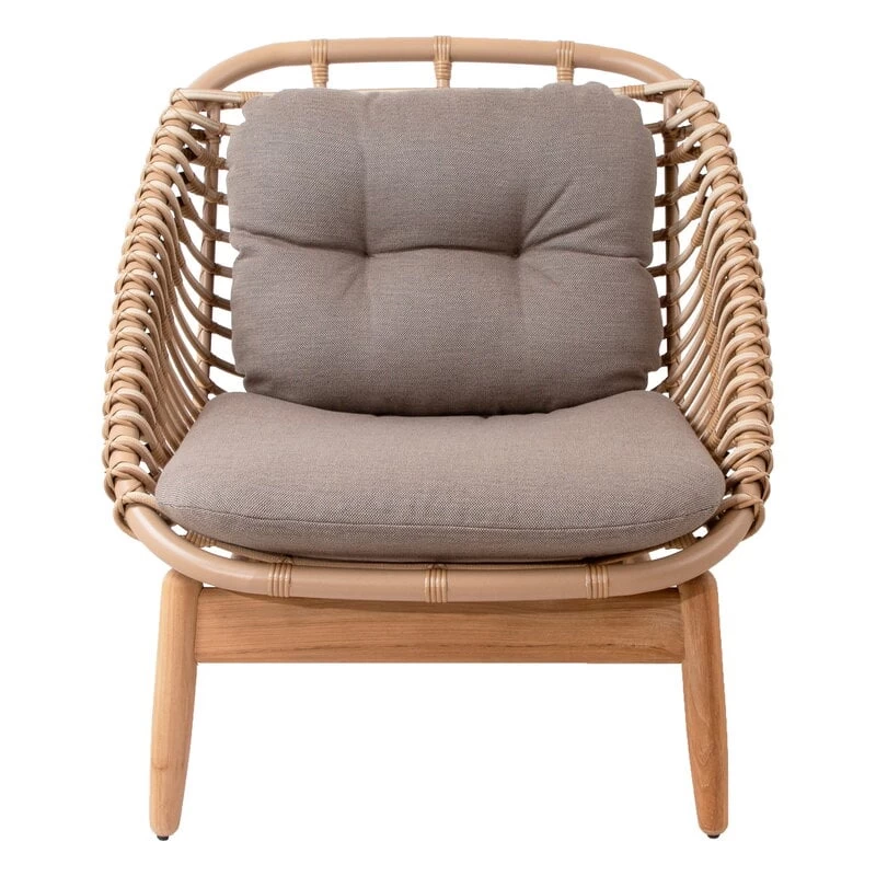 Der String-Outdoor-Loungesessel von Cane-line besticht durch sein charmantes und einladendes Design, das jeden noch so kleinen Außenbereich aufpeppt. Denn der Sessel nimmt nicht viel Platz in Anspruch. Der von Foersom & Hiort-Lorenzen entworfene Loungesessel besteht aus einem Untergestell aus Teakholz und einem Sitz aus Polyrattan, dessen Oberfläche die variierende, organische Farbe von natürlichem Rattan nachahmt. Die schalenförmige Sitzfläche besteht aus Cane-line Weave, dem von Cane-line speziell für den Außenbereich entwickelten, synthetischen Material im Rattan-Stil. Das sehr witterungsbeständige Material behält seine Farbe und Form über Jahre hinweg, egal ob es regnet oder schneit, während die Teakholzbasis langsam eine schöne graue Patina entwickelt, die typisch für das natürliche Material ist. Der Loungesessel ist mit bequemen Kissen gepolstert, die speziell für den Einsatz im Freien entwickelt wurden.