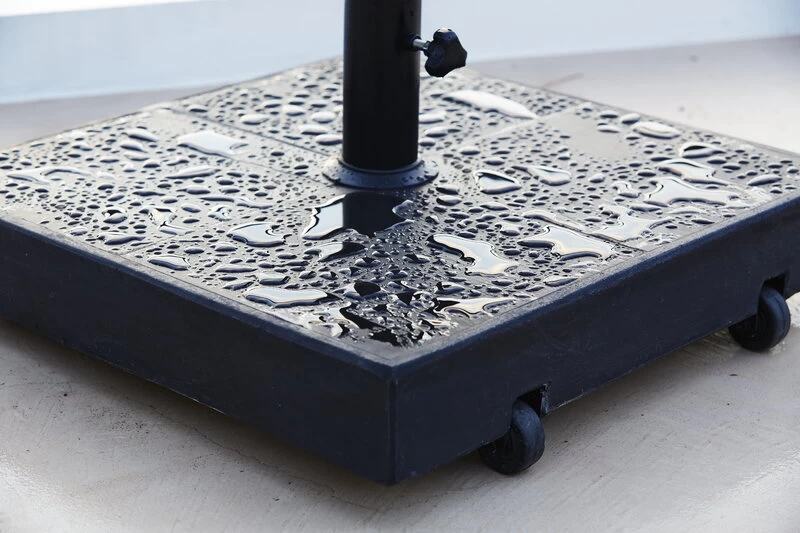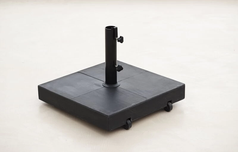 Der Sonnenschirmsockel von Cane-line wurde speziell für die Sunshade-Sonnenschirme entworfen, ist aber auch mit anderen Sonnenschirmen mit einem Stangendurchmesser von maximal 54 mm kompatibel. Der Sonnenschirmsockel besteht aus Betonplatten und wiegt 47 kg – so bleibt der Sonnenschirm auch bei Wind an seinem Platz. Trotz der schweren Struktur lässt sich der Sonnenschirmsockel dank der integrierten Rollen auf der Unterseite ganz einfach bewegen.