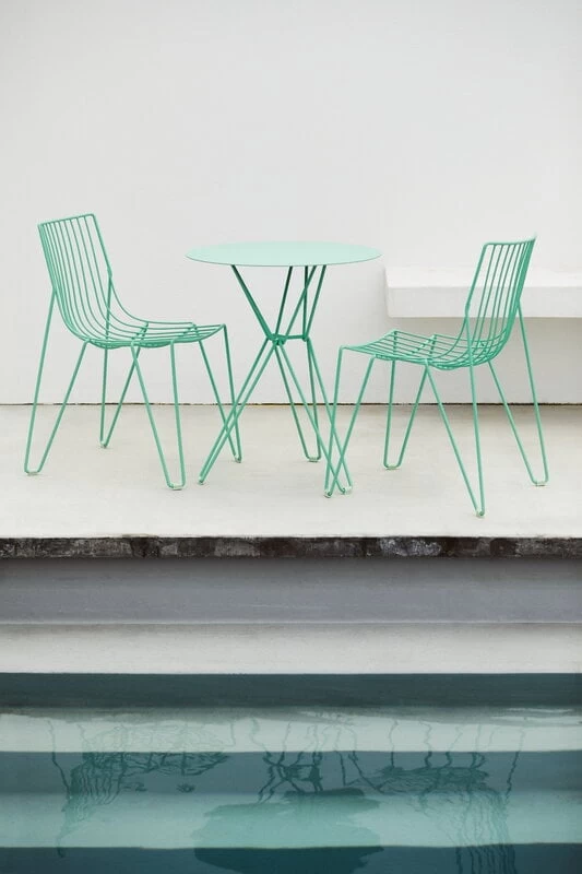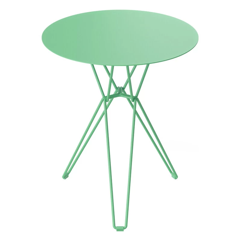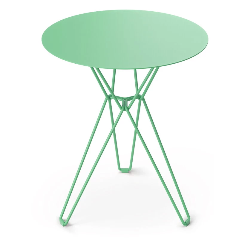 Tio von Massproductions ist ein eleganter Tisch, der sowohl für den Innen- als auch für den Außenbereich geeignet ist. Das Gestell des Tisches, das die runde Metalltischplatte anmutig stützt, besteht aus verzinktem Stahldraht mit einer raffinierten Pulverbeschichtung, die dem Tisch sein unverwechselbares, leichtes und luftiges Aussehen verleiht. Die raffinierte Tio-Kollektion wurde von Chris Martin entworfen und ist eine zeitlos schöne Wahl für Cafés und private Balkone – ideal für drinnen und draußen.