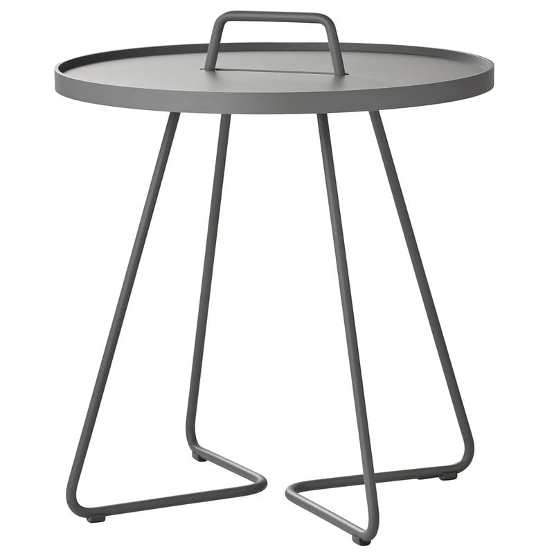 Der On-the-move von Cane-line ist ein fröhlicher und multifunktionaler Beistelltisch, der sowohl für den Innen- als auch für den Außenbereich geeignet ist. Aus robustem und leichtem Aluminium gefertigt und mit einem Griff ausgestattet lässt sich On-the-move leicht von einem Ort zum anderen bewegen. Die abnehmbare Tischplatte fungiert auch als Tablett, das abgehoben und separat verwendet werden kann. On-the-move ist ein perfekter Beistelltisch für Terrasse, Balkon oder Garten, aber auch ein praktischer, moderner Sofatisch im Wohnzimmer. Der Tisch wurde von dem dänischen Designbüro Stand+Hvass entworfen.