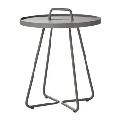 Der On-the-move von Cane-line ist ein fröhlicher und multifunktionaler Beistelltisch, der sowohl für den Innen- als auch für den Außenbereich geeignet ist. Aus robustem und leichtem Aluminium gefertigt und mit einem Griff ausgestattet lässt sich On-the-move leicht von einem Ort zum anderen bewegen. Die abnehmbare Tischplatte fungiert auch als Tablett, das abgehoben und separat verwendet werden kann. On-the-move ist ein perfekter Beistelltisch für Terrasse, Balkon oder Garten, aber auch ein praktischer, moderner Sofatisch im Wohnzimmer. Der Tisch wurde von dem dänischen Designbüro Stand+Hvass entworfen.