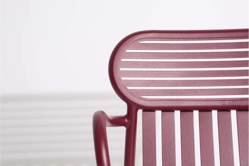 Der Brückenstuhl Week-end ist Teil der Petite-Friture-Kollektion, die Aluminiummöbel für den Außengebrauch umfasst. Der attraktive Stuhl zeichnet sich durch ovale Formen mit sowohl horizontalen als auch vertikalen Lamellen an der Rückenlehne aus. Alle Stühle der Serie Week-end sind stapelbar.
