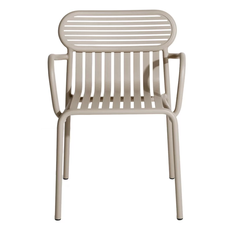 Der Week-end-Brückenstuhl ist Teil der Kollektion an Outdoor-Möbeln aus Aluminium von Petite Friture. Er verfügt über ovale Formen und sowohl horizontale als auch vertikale Leisten an der Rückenlehne. Alle Stühle der Week-end-Kollektion sind stapelbar.
