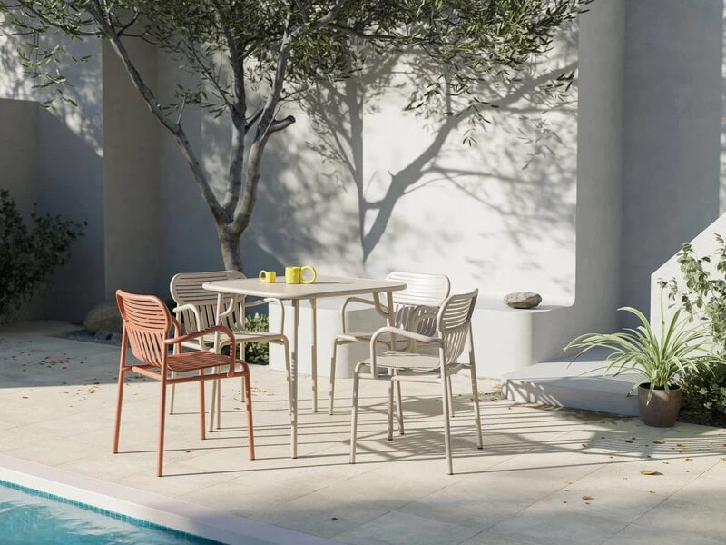 Die vom Design-Duo BrichetZiegler entworfenen Outdoor-Möbel der Week-end-Kollektion von Petite Friture kombinieren verschiedene geometrische Formen mit funktionalem, zeitgenössischem Design. Die Aluminiumkonstruktion macht die Möbel leicht und gleichzeitig widerstandsfähig. Die epoxidbeschichtete matte Oberfläche hält jedem Wetter stand. Das Week-end-Sortiment besteht aus Stühlen, Bänken und Tischen in vielen Farben und Größen und eignet sich daher sowohl für große Gärten als auch für kleinere Balkone. Dank des schlichten Designs können die Möbel auch in Innenräumen verwendet werden.