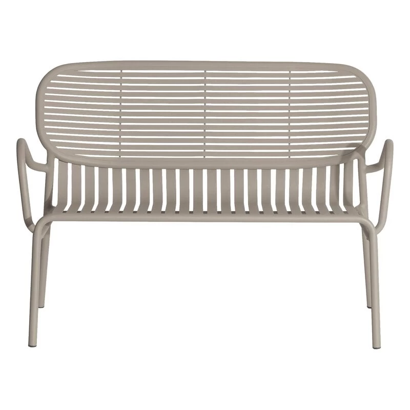 Das Week-end-Doppelsofa ist Teil der Kollektion an Outdoor-Möbeln aus Aluminium von Petite Friture. Das bequeme 2-Sitzer-Sofa zeichnet sich durch ovale Formen aus und verfügt über horizontale und vertikale Leisten an der Rückenlehne. Mit den separat erhältlichen Sitzkissen können Sie Ihre Week-End-Couch noch komfortabler gestalten.